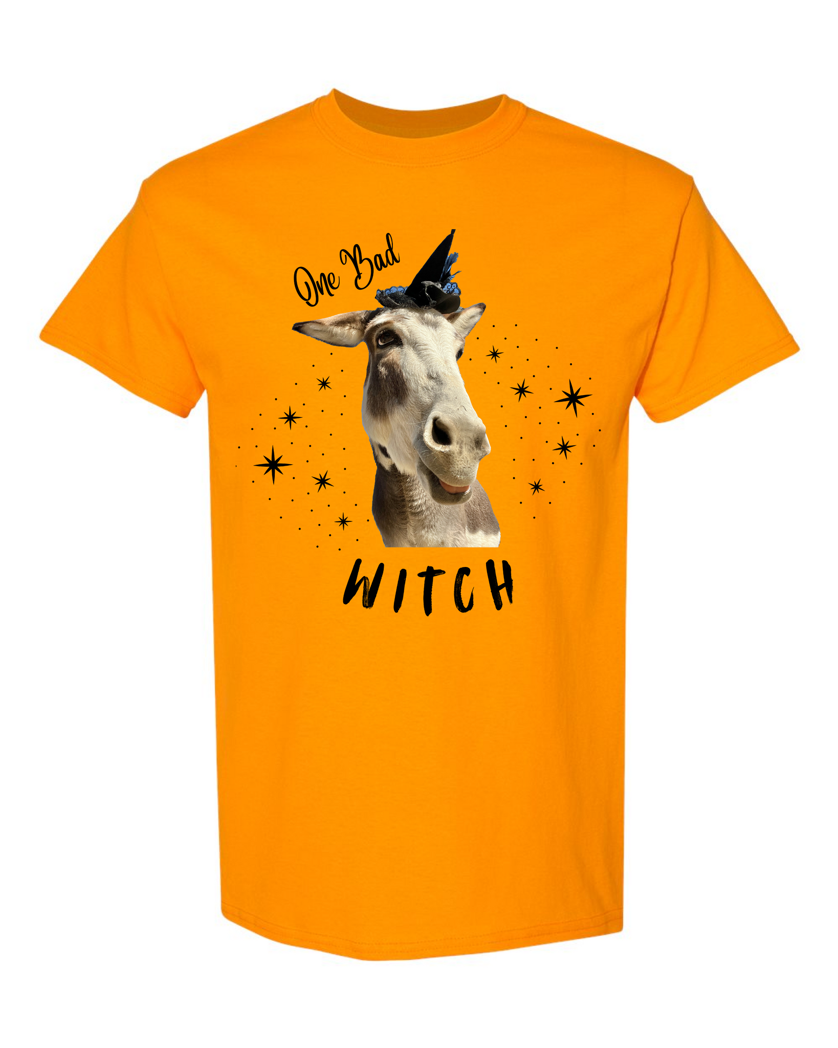 Our new One Badass Witch Halloween shirt features our sweet Fancy. These are printed on a Gildan 50/50. They are a pre-order item. Orders placed by October 13th are guaranteed in plenty of time for Halloween. FREE shipping in the domestic USA.